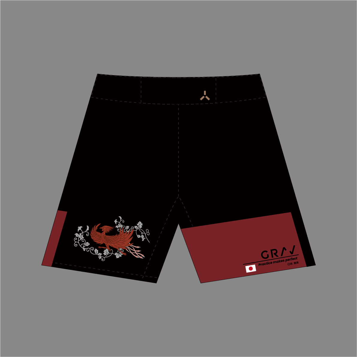 GRAV赤ハーフパンツはは、日本人が大切にしてきた戦う姿勢と不屈の精神を込めた一着。